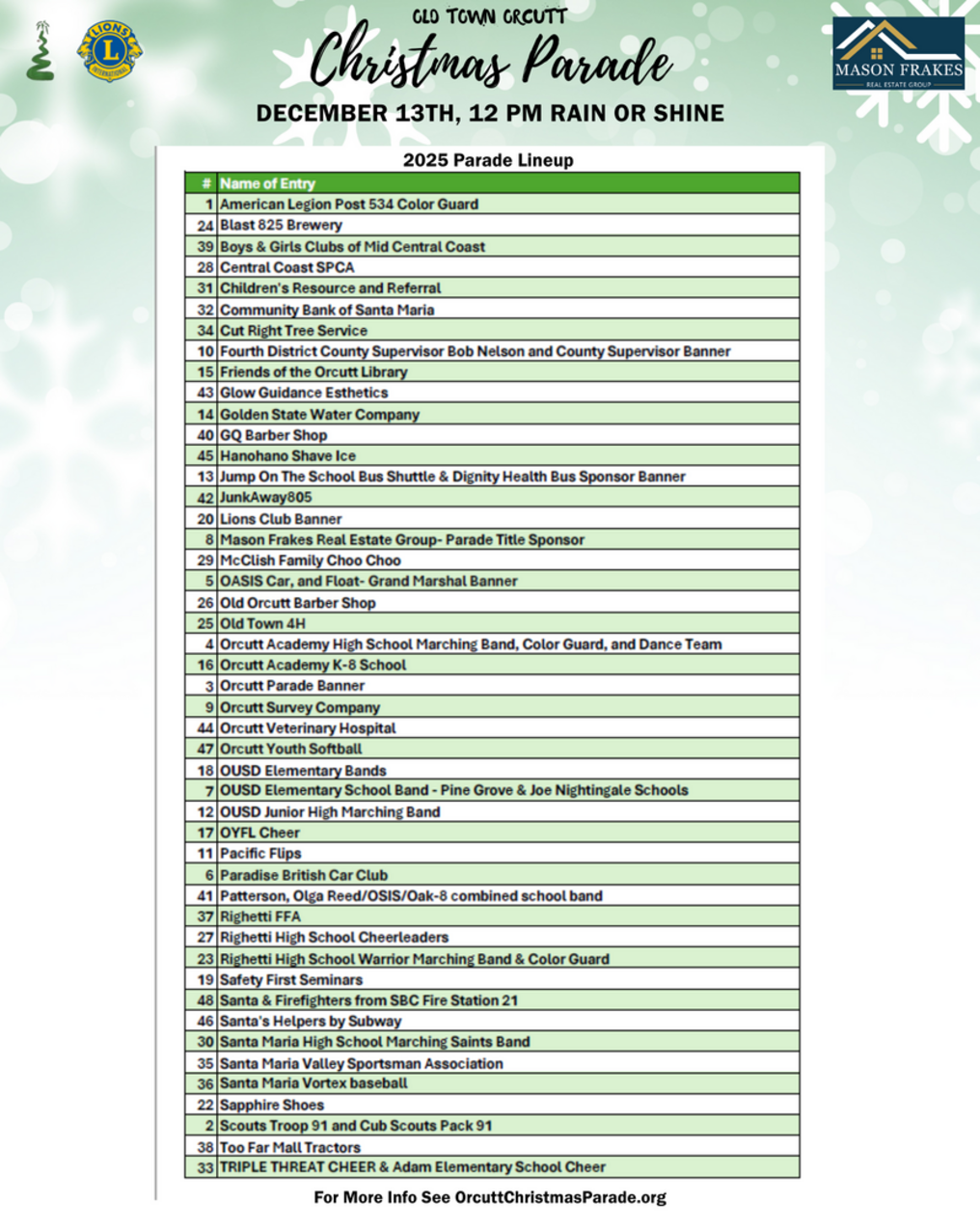2025 Parade Lineup